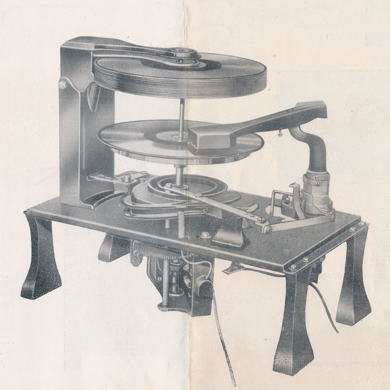 演奏が終わりますと、アームは上昇して右方に去り、レコードの最下端の一枚がターンテーブル上に落下し、アームは戻動して針をまずレコードの音溝の無い部分に置き静かに音溝中に滑入させ第二枚の演奏を始めます。