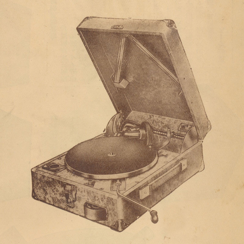 七分シングルスパイラルモーター、無調節自動停止器付。円盤は新型、サウンドボックスは大衆号、針入器は新型回転式。