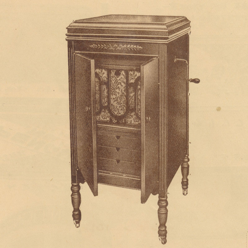 飾戸は前に開いて左側に押せば自然格納し得。飾戸の内は特に巨大なるペンギン特許音響装置を有する音響誘導室にて