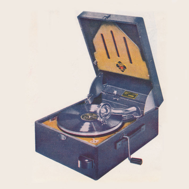 モーター:幅1インチ、長さ15フィート、単式ゼンマイ10インチ折返回転盤付 ホーン:音響楽上のあらゆる理論と実際とを活用して設計せる長音道式木製ホーン サポート:反響板兼用片手開閉自由スプリング式サポート特許第2919,9549,2917号、長音道式ホーンとのコンピレーションによる再生音の完全さを誇る画期的なもの 無調節自動停止器:自由に始動し演奏終了と同時に自動的に停止す