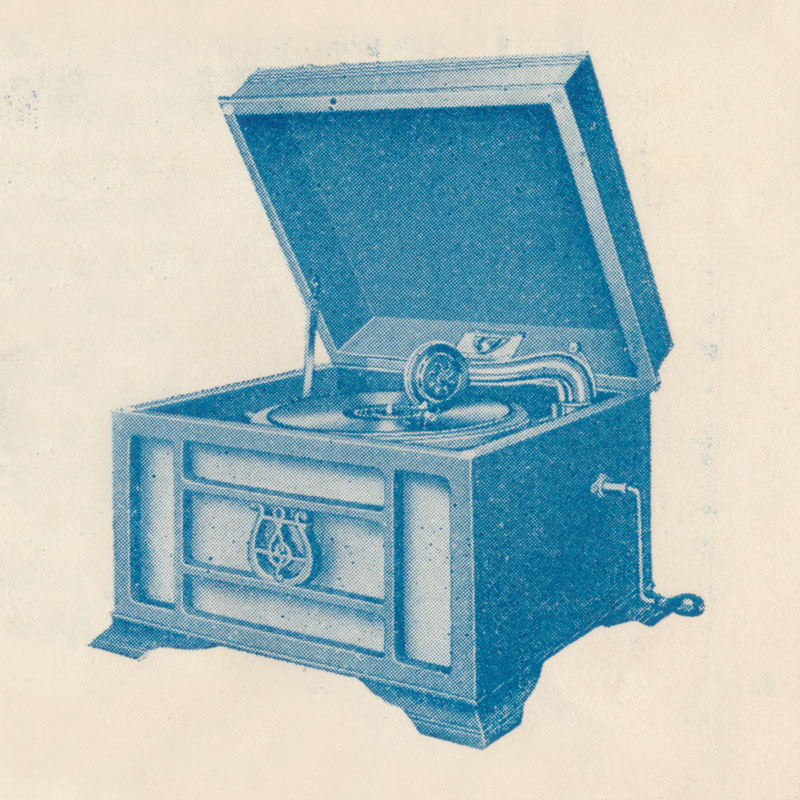 国産蓄音器として弊店工場にて特に、製作致しましたもの、音量、体裁、値段、三拍子揃ったご家庭向 永年の発売によりまして、其の真価を認められております。